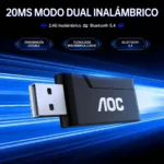 Latencia: baja latencia ~25 ms en modo inalámbrico 2,4 GHz.
