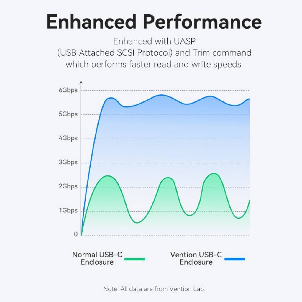 La caja externa Vention KPAB0 ofrece una combinación de velocidad, compatibilidad y protección, siendo una opción confiable para quienes buscan una solución de almacenamiento portátil eficiente.