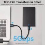 Conectividad y Velocidad: Equipado con una interfaz USB 3.0 Micro-B, ofrece velocidades de transferencia de datos de hasta 5 Gbps, permitiendo la transmisión de archivos de 1 GB en aproximadamente 3 segundos.